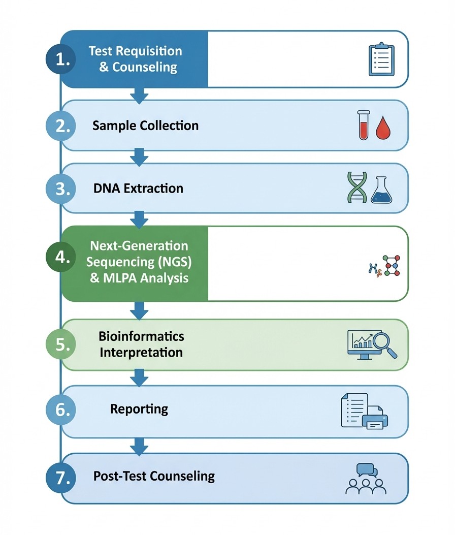 The test analyzes 2000+ genes, depending on the selected panel, using highly advanced sequencing technologies. The goal is to provide you and your partner with clear insights into genetic risks that may impact your future children.